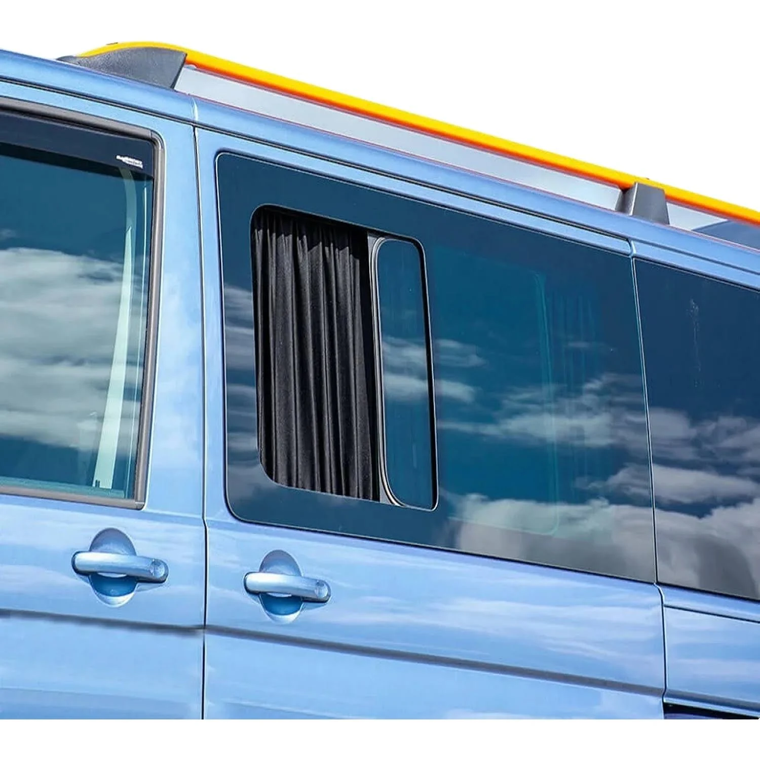 Transformez votre van en un espace confortable avec Ciel Miroitant, notre rideau occultant sur mesure pour porte et fenêtre. Conçu spécialement pour les modèles VW T4 et Transporter, ce rideau en tissu 80 deniers bloque efficacement la lumière, offrant intimité et isolation thermique. Ajoutez une touche d’élégance tout en profitant d’une ambiance paisible, où que vous soyez. ☁️✨